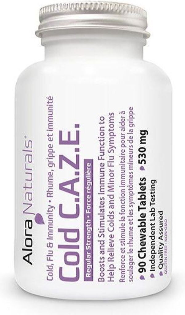 Alora Naturals - Cold C.A.Z.E. - 90 Tablet(s) - NPN: 80089285 -- Cold C.A.Z.E. is a powerful combination of Vitamin C, A, Zinc and Echinacea that play a vital role in boosting your bodys immune function and fighting infections. Our formula adds healing herbs, ginger, licorice, and wild cherry bark that may help heal sore throats and colds.